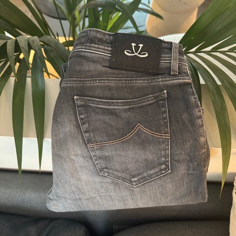 Selger en pent brukt Jacob Cohen jeans fra den nyeste kolleksjonen, modell Bard, størrelse 36. Håndlaget i Italia med eksklusive detaljer og førsteklasses komfort. Mørk blå vask med klassisk uttrykk – passer perfekt til både hverdags og mer formelle antrekk. Merk: J-en har falt av patchen, men dette påvirker ikke kvaliteten eller bruken. Buksa er i svært god stand og kun brukt ved få anledninger. Nypris ca. 6500 kr.