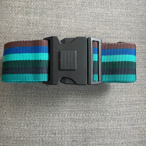 Stroppen forhindrer at kofferten åpnes under transport.