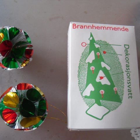 Håndlagde glass julekuler (6 stk), med rødt silkebånd, selges. Pent brukt, og som nye.