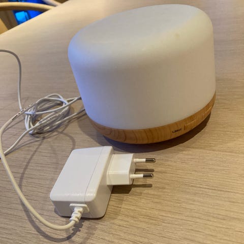 Selger helt ny hvit mini ultralyd luftfukter / diffuser med LED-belysning for 90 kr.