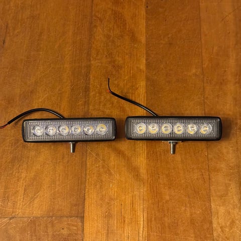 2 stk. Helt nye og ubrukte 12 volt Led lys. Perfekt til f.eks. arbeidslys/ryggelys. Monteringsdetaljer/fester følger med. Enkel montering, rød ledning til pluss, og sort ledning til minus.