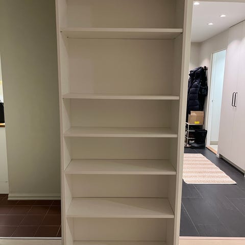 Pent brukt Billy bokhylle i lys eikefarge, uten bruksmerker. Må hentes i Ås