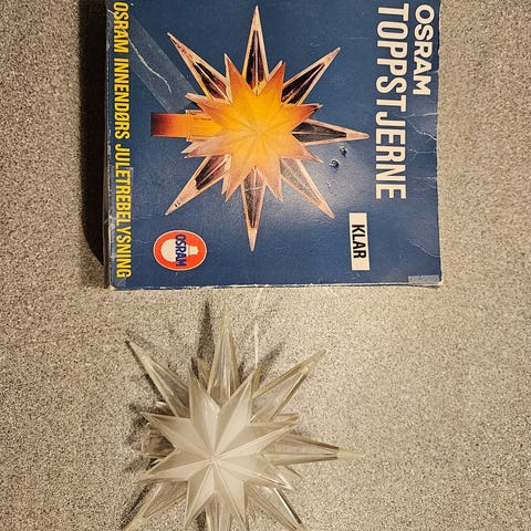 Osram juletre toppstjerne fra 70 tallet selges for hbo kr 290. Kan evt. selges mot betaling av porto.