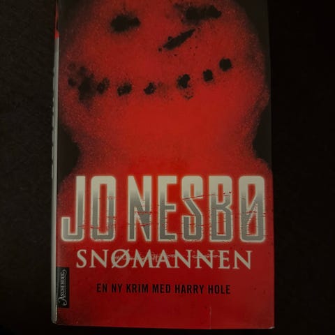Jo Nesbø Snømannen bok. Kriminalroman med norsk språk. Inneholder spenningshistorie med handling rundt snømannen og etterforskning.