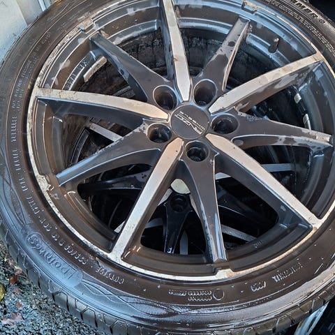 Felgene har kantkjøring og mindre skader enkelte steder.