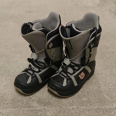 Pent brukte snowboardboots str 44 til salgs. Et par stilige boots i grå farge med oransje nyanser.