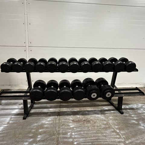 Selger et meget lite brukt veggmontert treningsutstyr i metall med justerbare høydeinnstillinger. Designet for styrketrenig med mange muligheter.