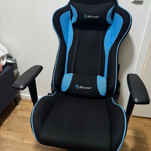 Arozzi gamingstol selges billig fordi den ikke brukes mer. Den har ingen bruksmerker og er i helt fin stand. Kan heves og senkes og ryggen kan tas bakover.