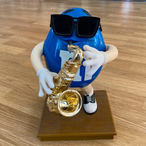 M & M's Rockstar blue Saxophone Player