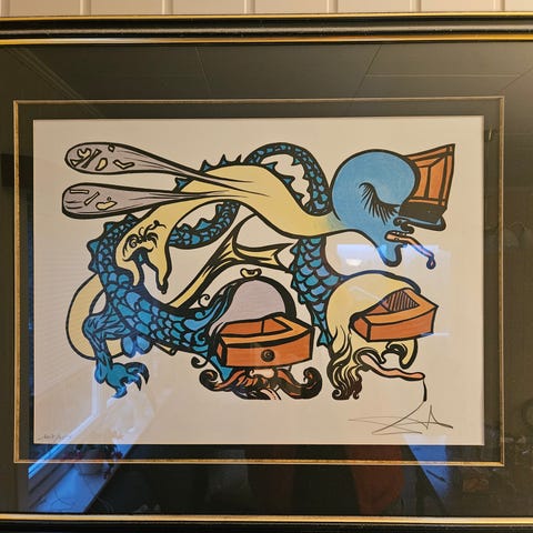 Sjeldent Litografi av Salvador Dali med Passepartout, glass og ramme 66x54 opplag 53 av 95 produserte, meget fint og intakt, interesse, kom gjerne med bud..