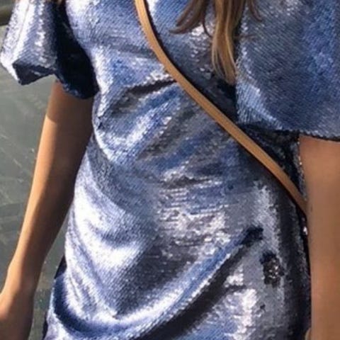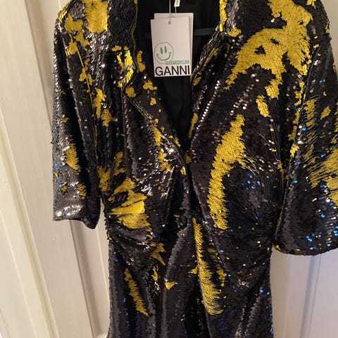 Ganni kjole til spesiell anledning i størrelse 38. Kjolen er sølvfarget og laget med paljetter som materiale. Nyprisen var 5200 kr. Kan sende med post