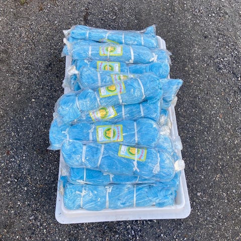Se bilder er 2 mindre som vises p0 bildet til høyre uten tau oppe og nede men kanskje bare 5 meter hvert . Det grønne .blytauet er ca 30 meter. Det størsre med flytetråd på er masker ca 13 til 14 cm diagonalt .