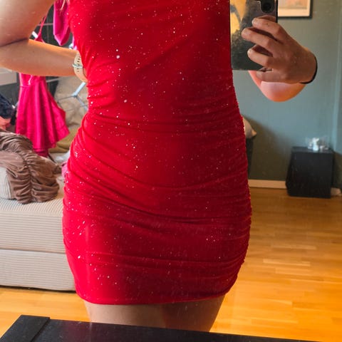 Max&Co festkjole i størrelse XS. Kjolen er rød og laget av paljetter. Designet for kvinner og egnet til festlige anledninger.