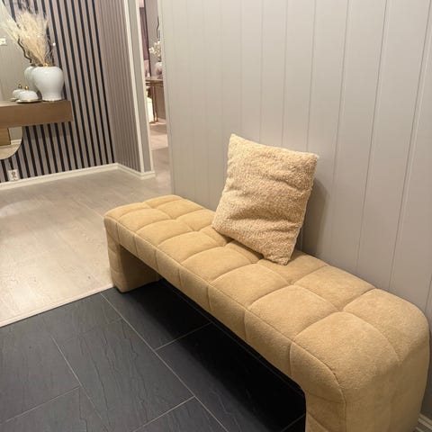 Dessverre har valpen kjedet seg og latt det gå utover litt på armlenet. Vi har hatt pledd liggende over slik at det ikke skal synes. Den må få stå til 2. Januar 😉..Må hentes på bosted