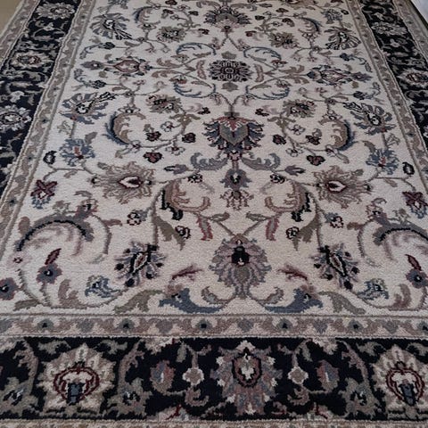 Mykt og lunt teppe i 80% håndvevd tovet ull og 20% bomull.