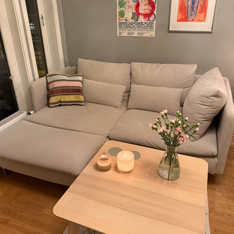 RESERVERT Söderhamn 3-seters sofa med hjørnedel og sjeselong. Trekk Tallmyra