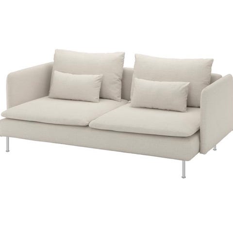 Pent og lite brukt sofa selges. Brukt i kjellerstue . De tre små putene som hører til sofaen følger ikke med, men har ubrukte trekk til disse som følger med. For mål se bilder.