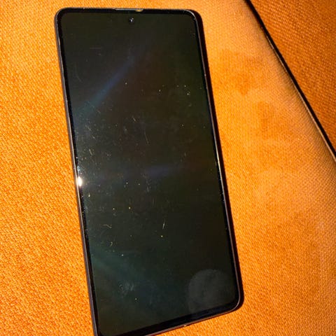 Se bilder, et lite kutt i høyre hjørne, men det gjør ikke telefonen noe dårligere på noe sett, bare et bruksmerke, Telefonen blir levert fabrikk restartet.