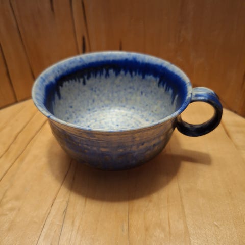Spesiell og flott mugge, relativt stor. Med nydelig glasur. Vurderes solgt.