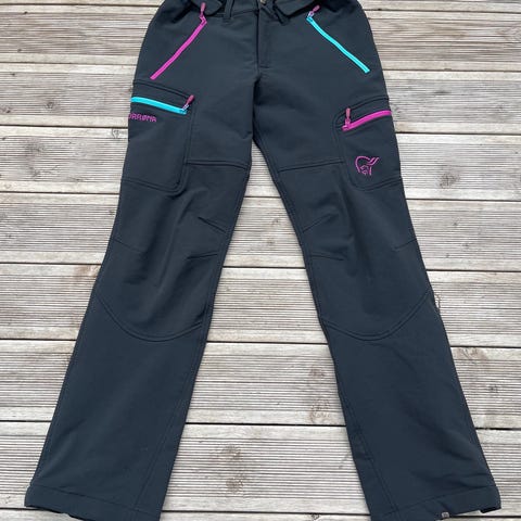 Egenskaper: pustende, værbeskyttende, slitesterk. Buksen har normal passform, flere lommer med glidelås, custom-fit-regulering i livet og justerbar ankelvidde.