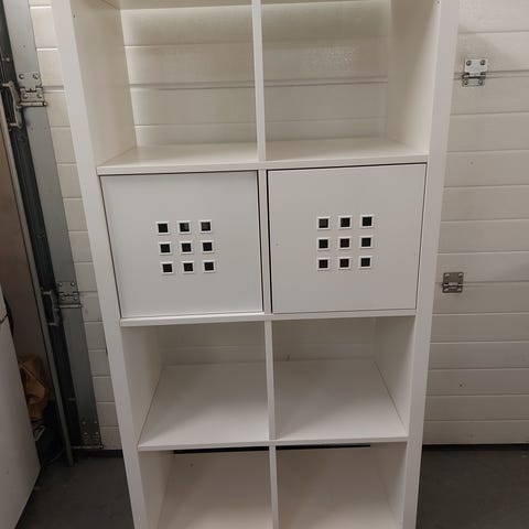 IKEA KALLAX hylle med god lagringsplass i 12 rom. Tre innsatser med to skuffer i hver medfølger.