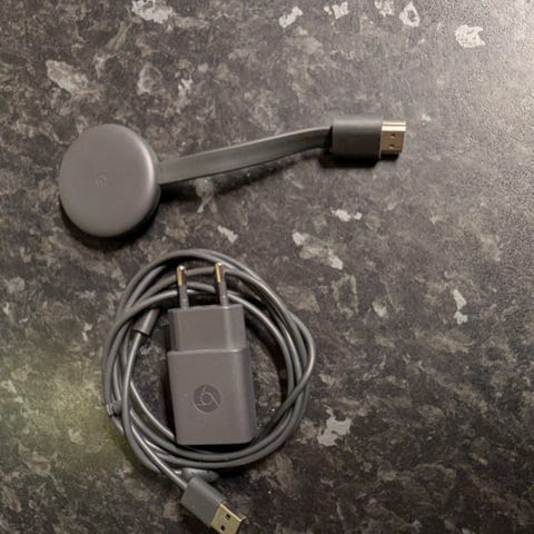 Google Chromecast med Google TV er en streaming-enhet som støtter HD-oppløsning. Den leveres med fjernkontroll og gir tilgang til flere strømmetjenester som YouTube, Netflix, Disney+, HBO Max, Spotify, og Google Home.