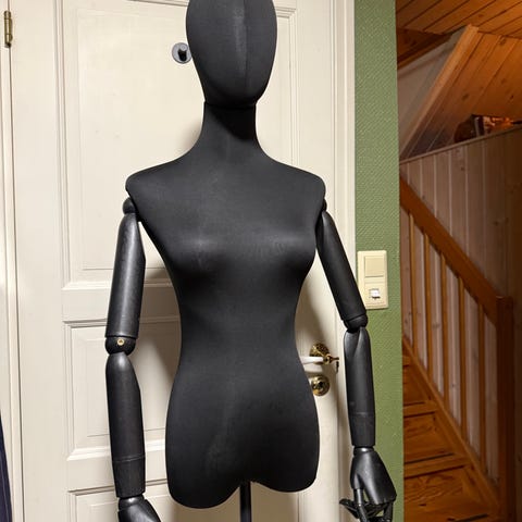 Utstillingsdukke selges rimelig i mørk grå glanset.