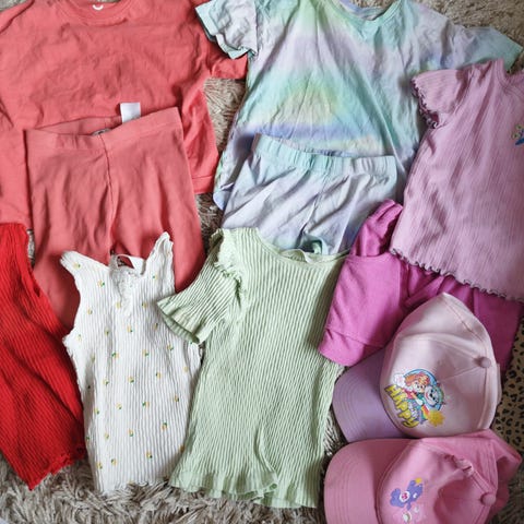 Litt av alt, kjoler, gensere (tynne og tykke), singlet, t skjorter, kjoler og pysjamas