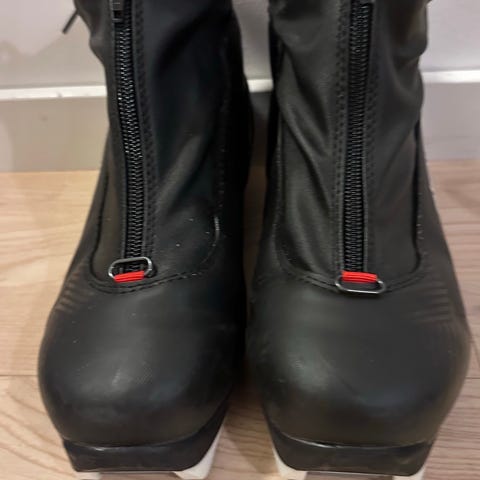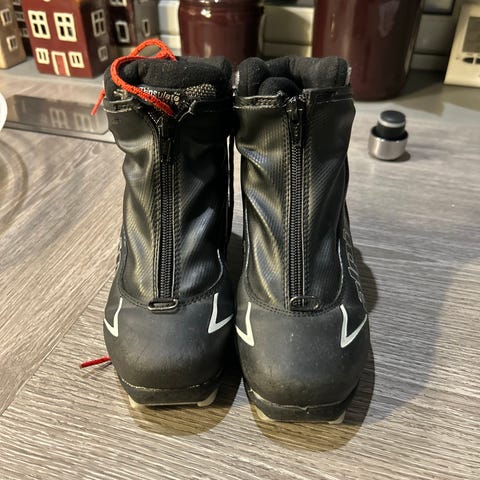 Selger disse skiskoene helt uten bruksmerker da de kun ble brukt på to skiturer før de ble for små.