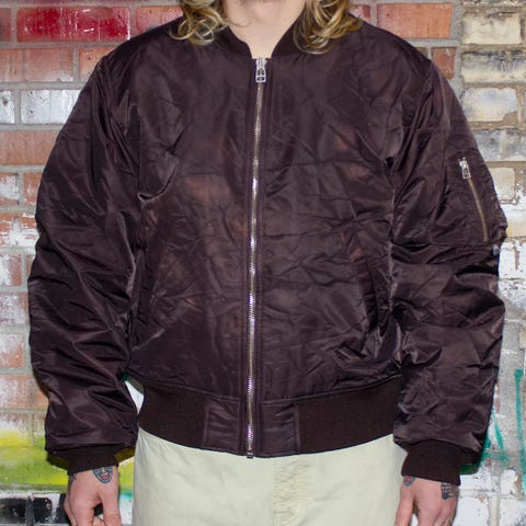 Selger en stilren bomberjakke fra STAMPD. Minimalistisk og moderne design i olivengrønn farge, med ribbestrikket krage og glidelåslukking. En tidløs jakke som passer like godt til hverdags som til mer gjennomførte antrekk.