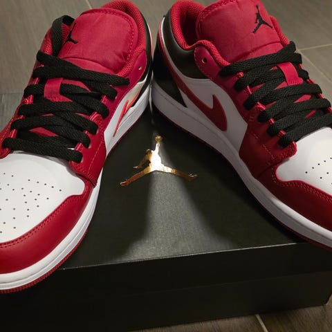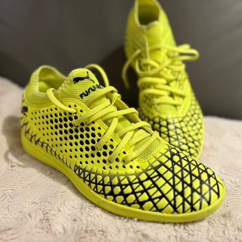 Skoene har en kombinasjon av lær og syntetisk materiale.