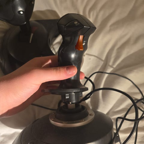 Strøken og nesten ubrukt joystick/Thrustmaster til flyspill selges rimelig.