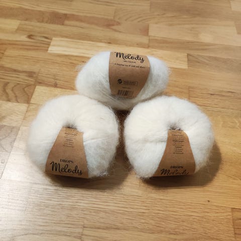 2 hesper a 100 gram. Fargenr 105 og 106. 400 meter pr 100 gram. 75 % extra fin merino og 25% polyamid