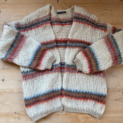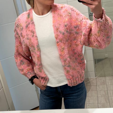 Stilig og lett cardigan i en flott grønnfarge. Størrelsen er one size. Den har en universiell passform pga snittet under armene.