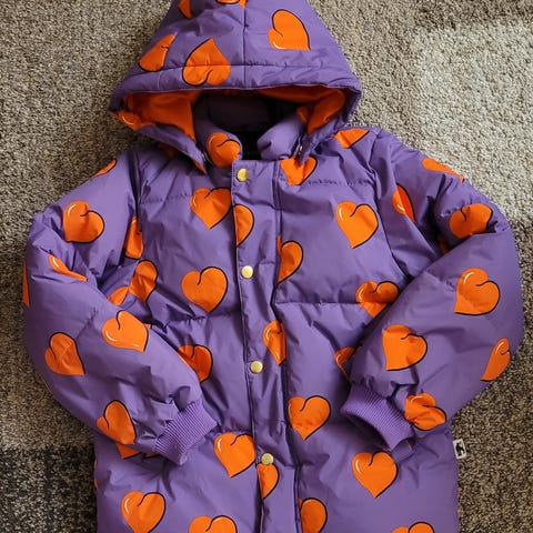Mini Rodini jakke i størrelse 122, unisex design, laget av polyester. Jakken har blå farge med røde detaljer og er egnet for barn.