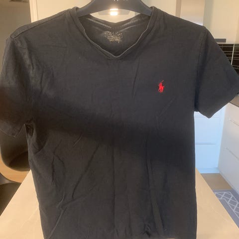 Ralph Lauren Polo T-skjorte i størrelse S (slim, noe liten i størrelsen) for herre. Laget av 100% bomull. Kortermet design med klassisk krage og knappelukking. Modell: The Iconic Mesh Polo Shirt. Kjøpt på Ralph Lauren butikk, ny pris rundt 1600kr.