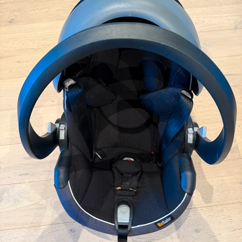 Barnesete og base selges rimelig. Praktisk modell som kan brukes både bakover- og fremovervendt stilling.