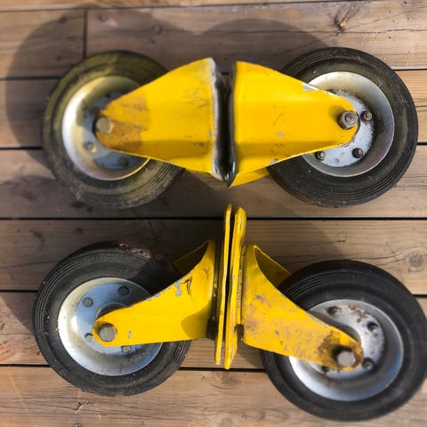 4 stk gummihjul, to er svingbare og har bremser. Maks vekt 70 kg. Pent brukt en kortere periode