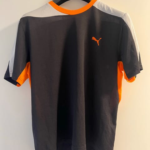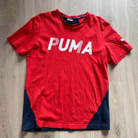Puma T-skjorte for menn i størrelse M. T-skjorten er hvit og egnet for ulike typer sport (Annet). Laget i materiale som bidrar til fukttransport (Dry Cell).