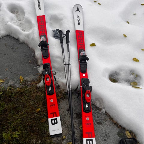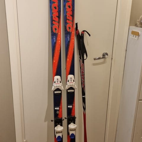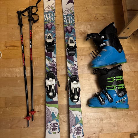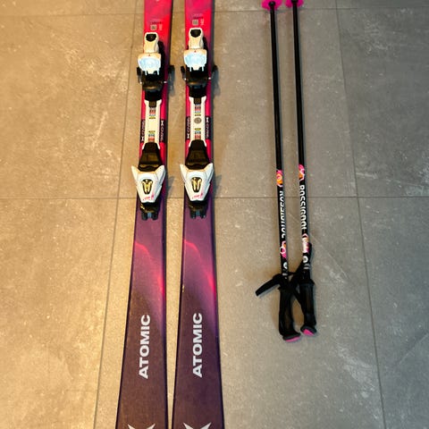 Slalomski Alpin pakke Atomic alpinski 149cm, sko, staver og hjelm.