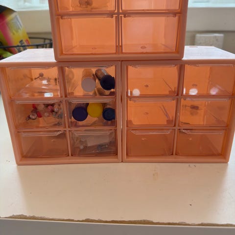 3store sammenleggbare oppbevarings"bokser" for skap og en liten. selges ubrukte da det ble kjøpt for mange.