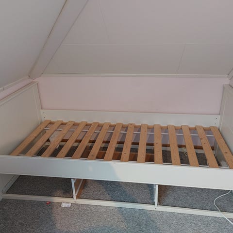 Følger med 2 nokså nye madrasser. Madrassene er like.