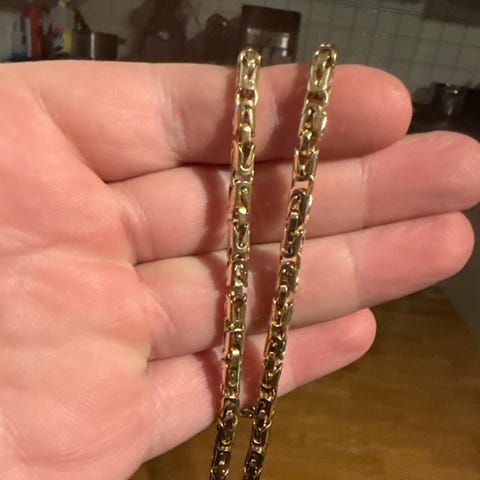 Selger et pent og lite brukt gullkjede i 14kt (525) som veier 38,2 gram.