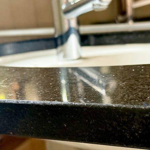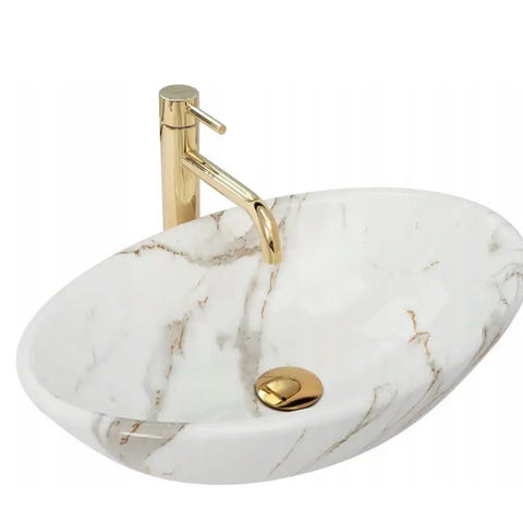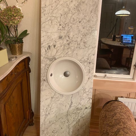 Rundt servant laget av naturlig marmor, ikke noe feil med det, brukt til en leilighet som ble solgt men ny eiern var ikke fornøyd med det, derfor byttet vi det før overtagelse.