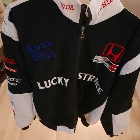 Kul og sjelden John Deere Racing-jakke i størrelse L. Klassisk racing/design med broderte logoer, blant annet John Deere, Roush Racing og nummer 97.