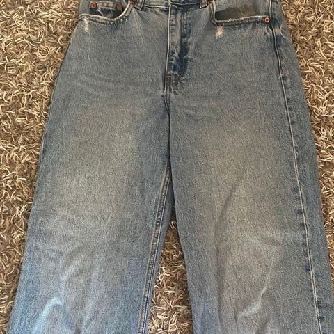 Dr. Denim Blue Denim Bukser i størrelse S med midjevidde W27. L 32. Laget av denim materiale, designet for kvinner. Buksen har slitte detaljer.