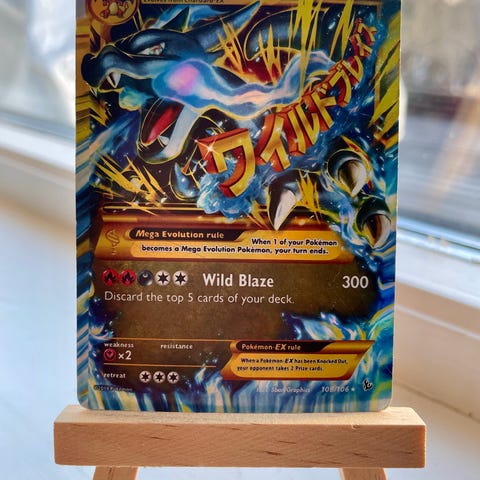 Selger Charizard EX #234 Pokémon-kort som er svært pent behandlet. Kortet har ligget i sleeve og toploader helt siden det ble åpnet, og har vært oppbevart tørt og trygt uten bruk i spill.