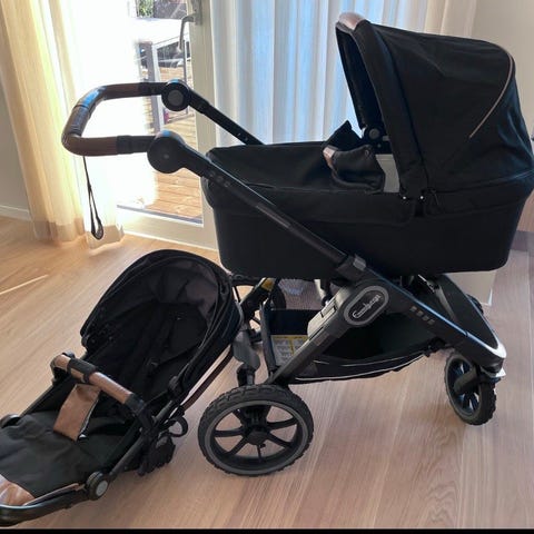Emmaljungavogn med ergonomisk sittedel selges. Farge olivengrønn med skinndetaljer. Kjempefin vogn der sittedelen kan snus begge veier og de sitter stødig. Både barn og foreldre har vært veldig fornøyde!