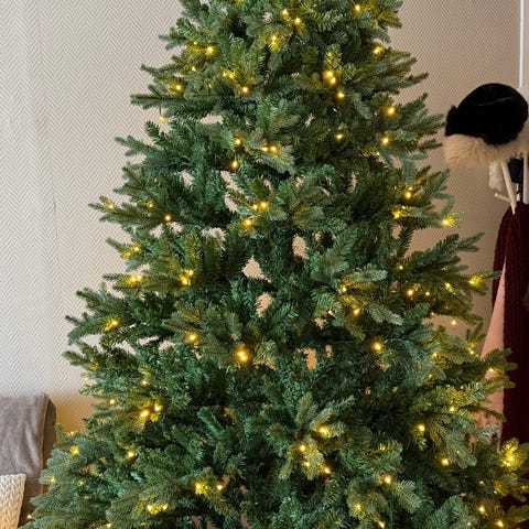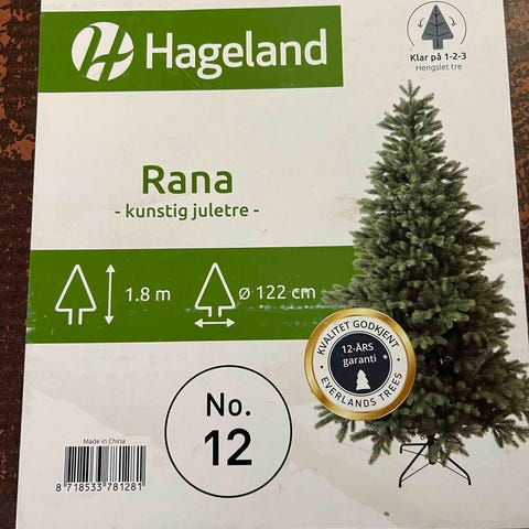 Treet er et “hengslet” tre (klar på 1-2-3), og har nålemix PE/PVC for mer naturtro utseende. Ifølge esken er det også 12 års garanti.