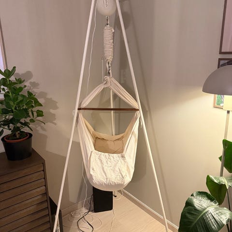 Dette har vært en fantastisk avlastning for oss. Vi opplevde at babyen hadde lengre og dypere sovestunder i denne Moonboonen.